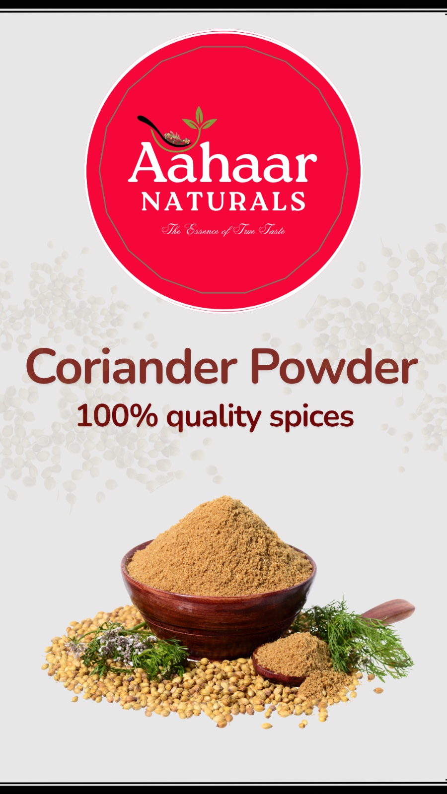 Freshly ground organic coriander powder with a mild, citrusy flavor that adds depth and aroma to curries, gravies, and spice blends.